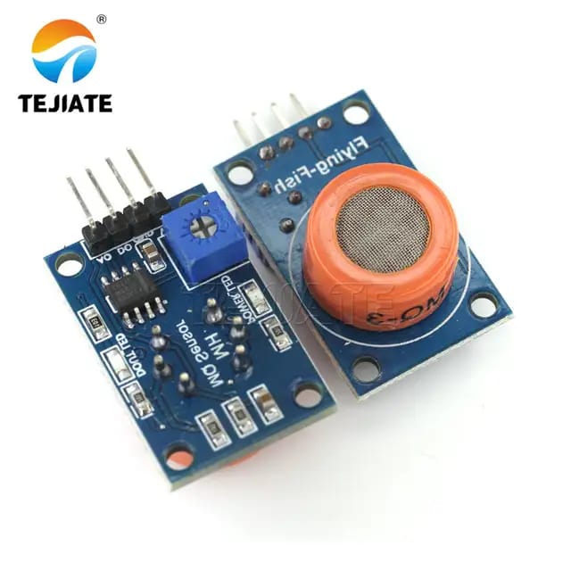 Este Sensor de Gás MQ-3 é um módulo capaz de detectar vapores de álcool e etanol, um sensor muito usado em projetos de bafômetro e de fácil conexão com Arduino e Raspberry Pi. Seu funcionamento é simples, quando a concentração de álcool fica acima do nível ajustado pelo potenciômetro, a saída digital D0UT fica em estado alto, se abaixo do nível, fica em estado baixo.